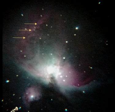 With Orion nebula we can see another nebula under it. Most amazing thing present in the image is of course Bow Shocks. I wasn't expecting them to see but guess what how I found them. Actually a Hubble telescope image was showing so much detail and then when I saw my own images I found that they are also visible in my images.